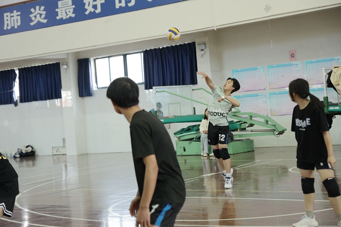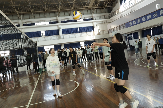 开幕式结束后,举行了两场学生排球比赛,场上队员精神饱满,斗志昂扬,团结协作,场边观赛同学积极为运动员呐喊助威。