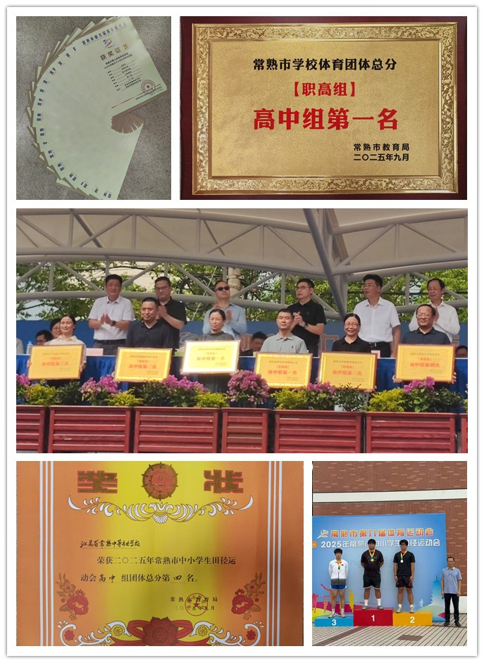 又讯,我校田径队在机电工程系钱军老师和智能信息系金群立老师的带领和指导下获2025年常熟市中小学生田径运动会单项4金2银1铜等成绩,同时获高中组团体总分第四名。