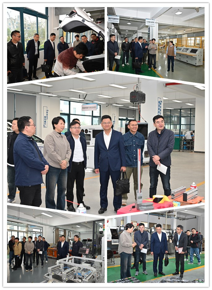 来宾们先后参观考察了智能汽车实训中心、中英学徒实训中心、智能控制实训中心、智能制造实训中心,学校领导向来宾们介绍了实训基地建设和人才培养等情况。